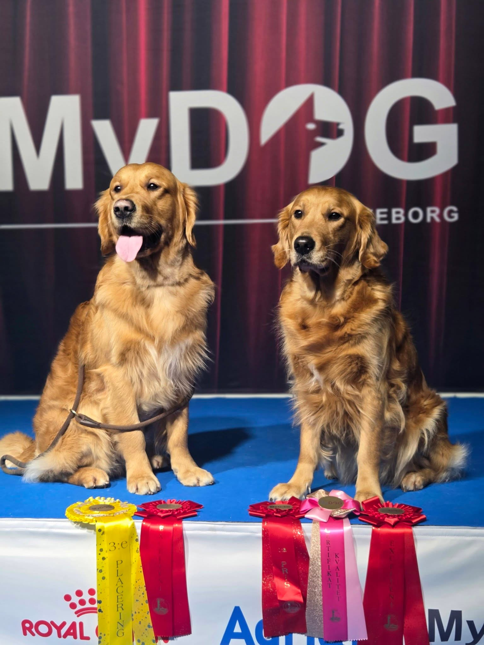 3 januari så var Gabriella Nilsson med Målriktade Elza till höger på bilden och Maria Tisell med Äventyrlige Mattis ( som är son till Elza ) på utställning i Göteborg på My Dog och fick med sig flera fina rosetter hem.